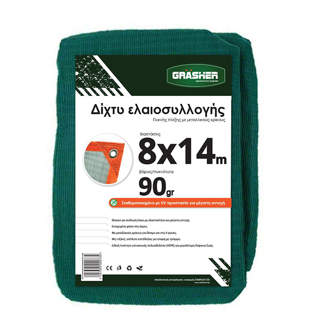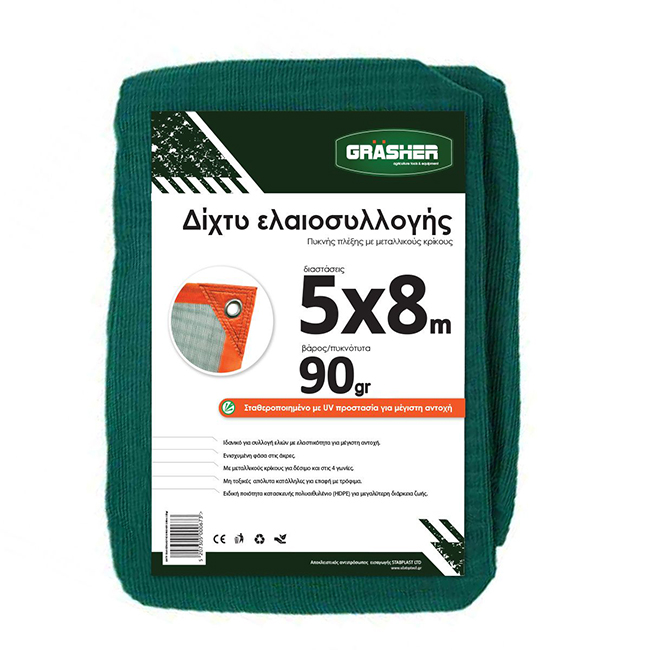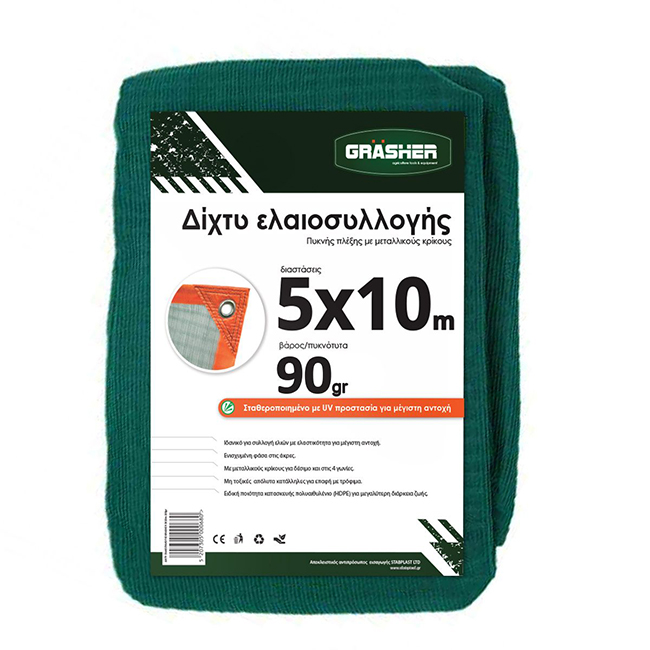 - Ποιότητα υλικού: Τα ανθεκτικά ελαιόδιχτα από πολυαιθυλένιο υψηλής πυκνότητας εξασφαλίζουν μακροχρόνια χρήση, αντοχή στις καιρικές συνθήκες και προστασία από σκισίματα.