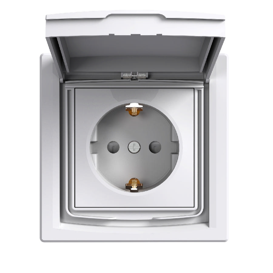 Asfora πρίζα σούκο ασφαλείας ΙΡ44 με καπάκι (2Π+Γ) Λευκή ...