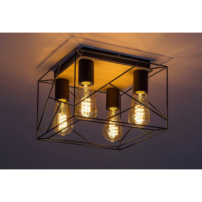 Boire φωτιστικό οροφής βιομηχανικού στυλ 4φωτο μαύρο και ξύλο (71024)
