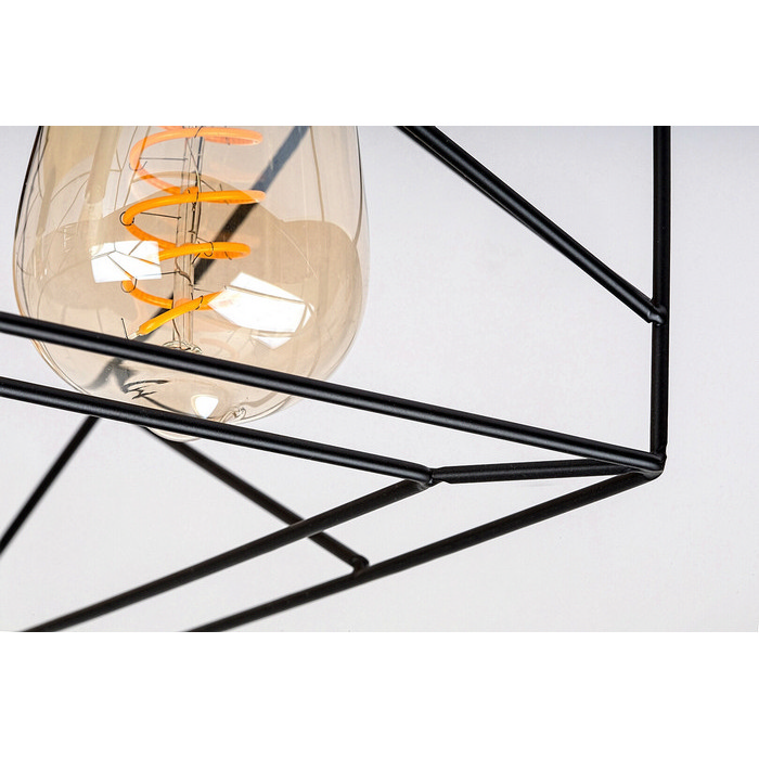 Η ορθογώνια μεταλλική γρίλια επιτρέπει την άμεση ορατότητα των λαμπτήρων, καθιστώντας το ιδανικό για χρήση με διακοσμητικούς λαμπτήρες τύπου filament. Το ξύλινο πλαίσιο που στηρίζει τις τέσσερις κεφαλές του φωτιστικού ενισχύει την αίσθηση χειροποίητης κατασκευής και προσθέτει μια φυσική πινελιά στην έντονη γεωμετρία της μεταλλικής βάσης.