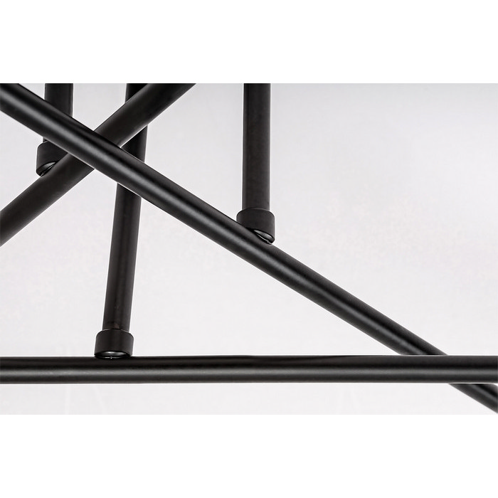 Οι τρεις λεπτές μεταλλικές μπάρες που τέμνονται στη βάση και φέρουν έξι ντουί E27 στις άκρες τους, χαρίζουν στο φωτιστικό έναν αρχιτεκτονικό χαρακτήρα. Χάρη στην έλλειψη καπέλων, ολόκληρος ο σχεδιασμός αναδεικνύεται όταν χρησιμοποιηθούν διακοσμητικοί λαμπτήρες, όπως filament ή retro-style bulbs, προσθέτοντας μοναδική ατμόσφαιρα.