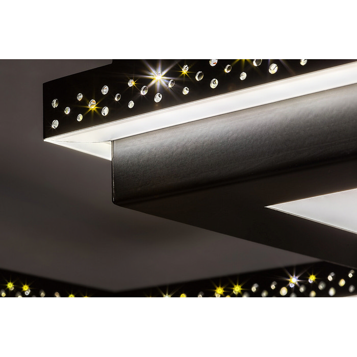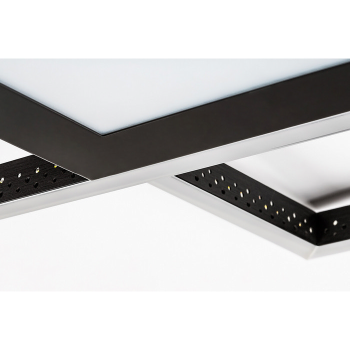Το φωτιστικό είναι εξοπλισμένο με ενσωματωμένο LED 40W, το οποίο εκπέμπει φυσικό λευκό φως (4.000K) με φωτεινή ροή 2.000 lumen και διάρκεια ζωής 20.000 ωρών, προσφέροντας άνετο και ποιοτικό φωτισμό στον χώρο σας. Το σώμα από μαύρο ματ μέταλλο και οι λευκοί πλαστικοί διαχυτές ενισχύουν την αισθητική αντίθεση, δημιουργώντας ένα εκλεπτυσμένο και σύγχρονο αποτέλεσμα.