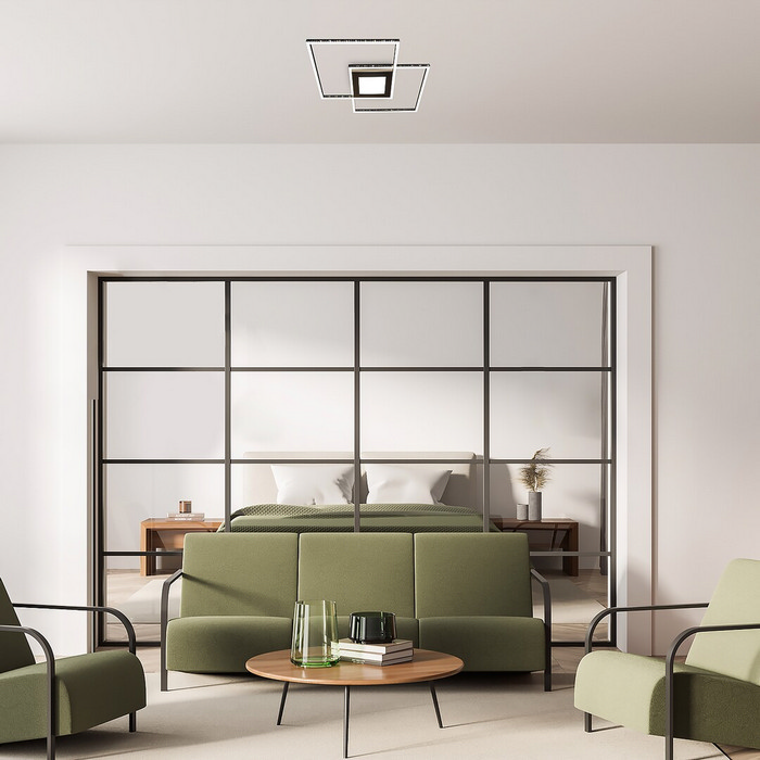 Το φωτιστικό οροφής Casimir εντυπωσιάζει με την αρχιτεκτονική γεωμετρία και την καθαρής γραμμής αισθητική του, αποτελώντας ιδανική επιλογή για μοντέρνα σαλόνια και υπνοδωμάτια. Ο σχεδιασμός του βασίζεται σε δύο διασταυρούμενα τετράγωνα σχήματα, που δημιουργούν μια εντυπωσιακή, συμμετρική δομή με διακοσμητικό χαρακτήρα.