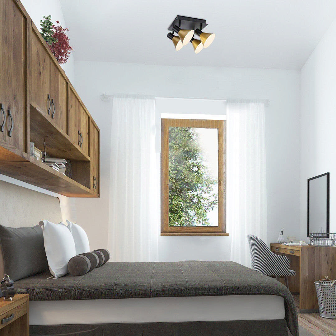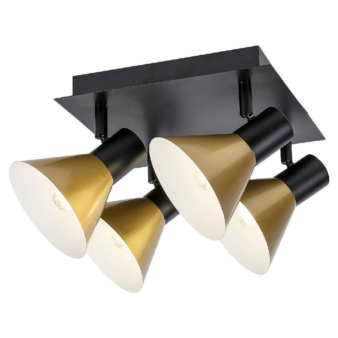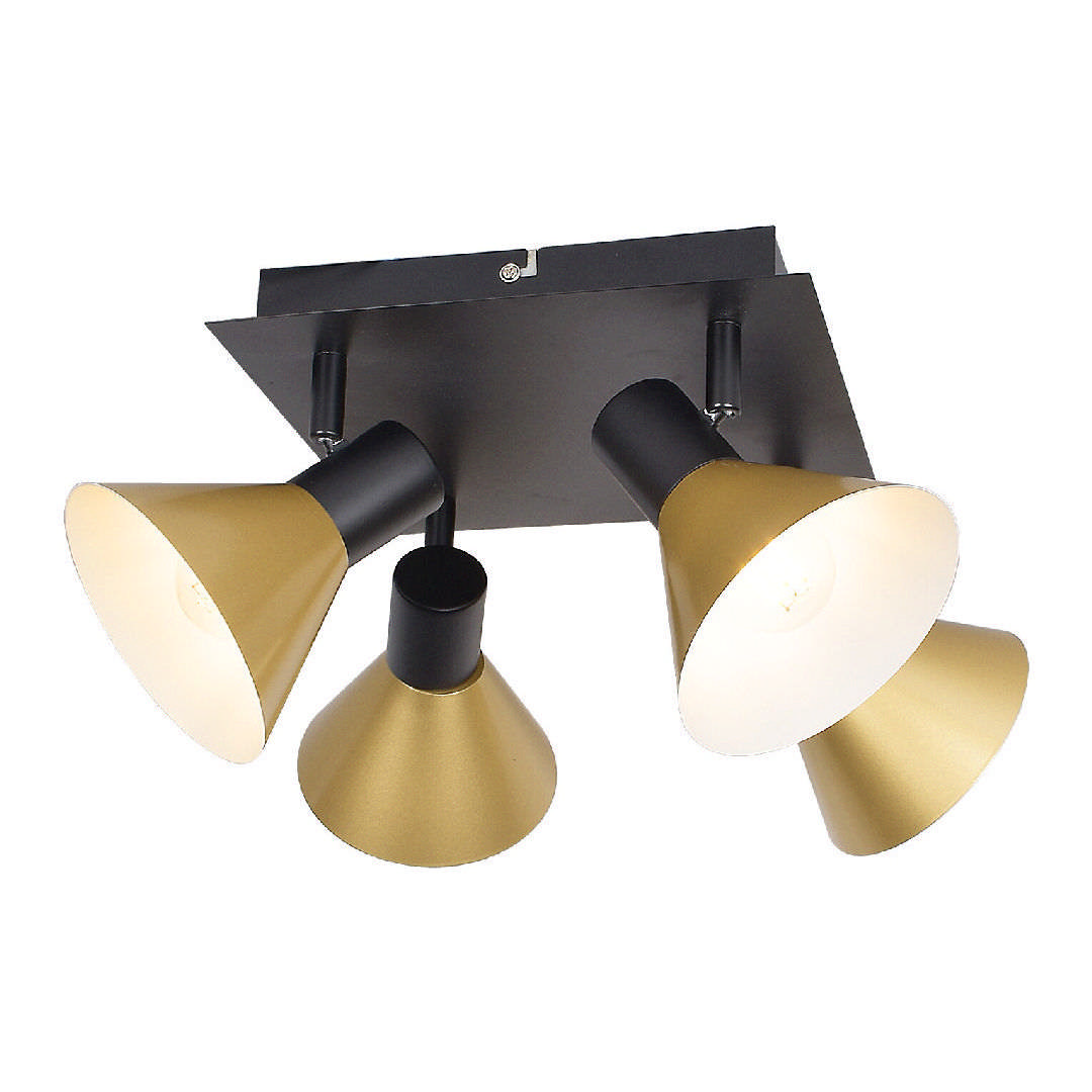 Το Alvaro διαθέτει τέσσερις ανεξάρτητες κεφαλές φωτισμού, οι οποίες είναι ευέλικτες και σας επιτρέπουν να κατευθύνετε το φως ακριβώς εκεί που το χρειάζεστε. Τα καπέλα του φωτιστικού έχουν έναν κωνικό σχεδιασμό που πλαταίνει προς τα κάτω και είναι ανοιχτά στο κάτω μέρος, παρέχοντας άμεσο φωτισμό. Η ματ μαύρη μεταλλική κατασκευή του φωτιστικού προσφέρει μια σύγχρονη και διαχρονική εμφάνιση, ενώ το εσωτερικό των καπέλων με χρυσό φινίρισμα δημιουργεί μια ζεστή, χρυσαφένια λάμψη όταν το φως διαχέεται, προσθέτοντας μια νότα πολυτέλειας.