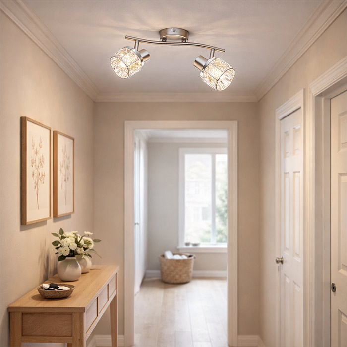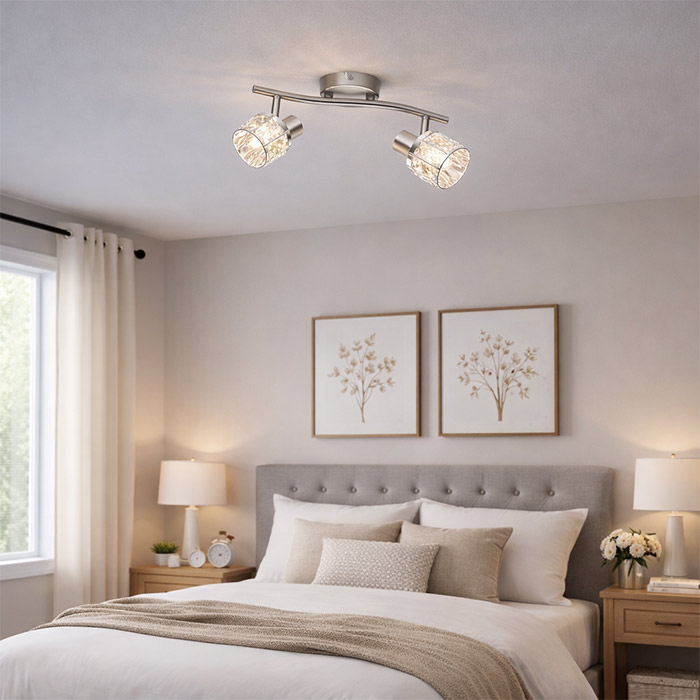 Το Sheen φωτιστικό οροφής δίφωτο νίκελ ματ διαθέτει δύο βάσεις λαμπτήρων τύπου E14, επιτρέποντας την επιλογή διαφορετικών αποχρώσεων φωτισμού ανάλογα με τις ανάγκες του χώρου. Με λαμπτήρες LED μπορείτε να επιλέξετε θερμό, φυσικό ή ψυχρό φωτισμό και να δημιουργήσετε την ιδανική ατμόσφαιρα στον χώρο σας.