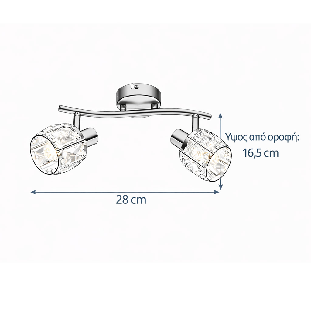 Οι διαστάσεις του φωτιστικού sheen είναι οι ακόλουθες : Μήκος 28cm και απόσταση από την οροφή 16.5cm.