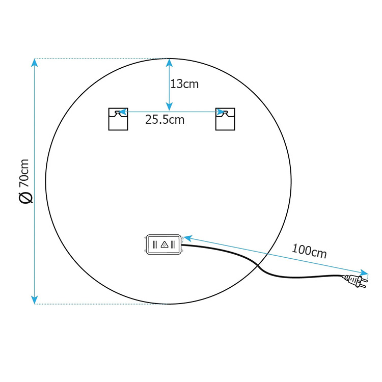 Η λειτουργία anti-fog διατηρεί την επιφάνεια καθαρή ακόμη και μετά από ζεστό ντους, ενώ οι δύο διακόπτες αφής επιτρέπουν εύκολο χειρισμό των λειτουργιών. Επιπλέον, ο Rodez καθρέπτης μπάνιου LED Φ70 με αντιθαμβωτικό διαθέτει ενσωματωμένη οθόνη ώρας και θερμοκρασίας, προσθέτοντας πρακτικότητα στην καθημερινότητα.