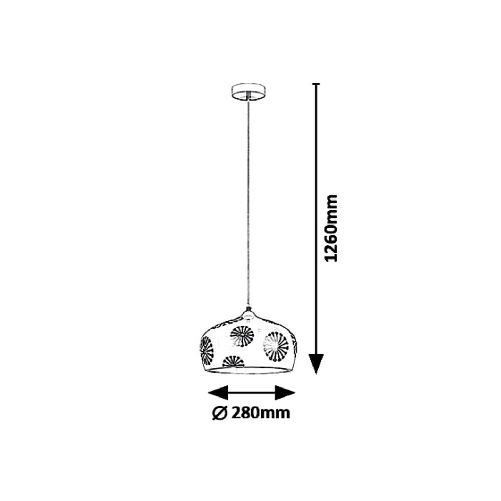 Χάρη στο παραδοσιακό στυλ του κρεμαστού φωτιστικού ‘Ginger’, το οποίο είναι κατασκευασμένο από μέταλλο και κεραμικό, μπορεί να ενσωματωθεί καλά σε πολλούς εσωτερικούς χώρους. Το αμπαζούρ σε χρώμα χρυσό, διακοσμημένο με σχέδια που θυμίζουν λουλούδια πικραλίδας, δίνει σε αυτό το μοντέλο μία υπέροχη, χαρούμενη εμφάνιση. Προτείνουμε το φωτιστικό αυτό να τοποθετηθεί στο σαλόνι ή στην τραπεζαρία ή στην κουζίνα. Κατασκευασμένο με έναν συνδυασμό χρωμάτων από χρυσό και λευκό, μπορεί να λειτουργήσει με μία λάμπα ισχύος έως και 40W και υποδοχή Ε-14. Εάν τοποθετηθεί στην κουζίνα, συνιστάται να επιλέξετε μία λάμπα με φυσική λευκή απόχρωση. Εάν τοποθετηθεί στο σαλόνι ή την τραπεζαρία σας, συνιστάται να χρησιμοποιηθεί μία πιο θερμή λευκή απόχρωση, έτσι ώστε να ενισχύσετε την ζεστή, χαλαρή ατμόσφαιρα του δωματίου. Το φωτιστικό συμπληρώνεται με μία στρογγυλή διακοσμητική βάση διαμέτρου 280mm και η απόσταση από την οροφή είναι 1260mm. Το φωτιστικό πωλείται χωρίς τη λάμπα.