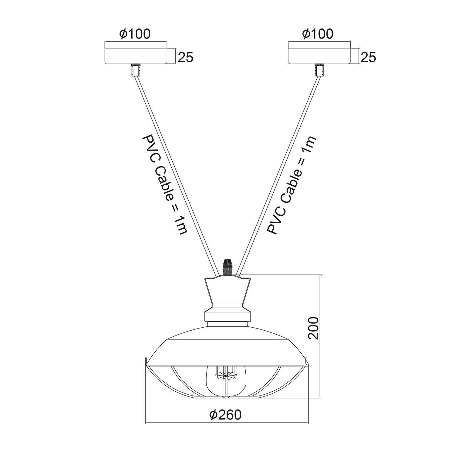Angela κρεμαστό φωτιστικό σε σχήμα καμπάνας μαύρο 2 καλωδίων (KS14632BB)