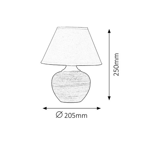 Φωτιστικό κομοδίνου με διαχρονική εμφάνιση και 1 υποδοχή. Μπεζ κεραμικό φωτιστικό με διάμετρο 20,5 cm, ύψος 25 cm και λευκό υφασμάτινο αμπαζούρ. Το φωτιστικό μπορεί να χρησιμοποιηθεί με πηγή φωτός εξοικονόμησης ενέργειας καθώς και με ισχύ έως 40W, υποδοχή τύπου E14.