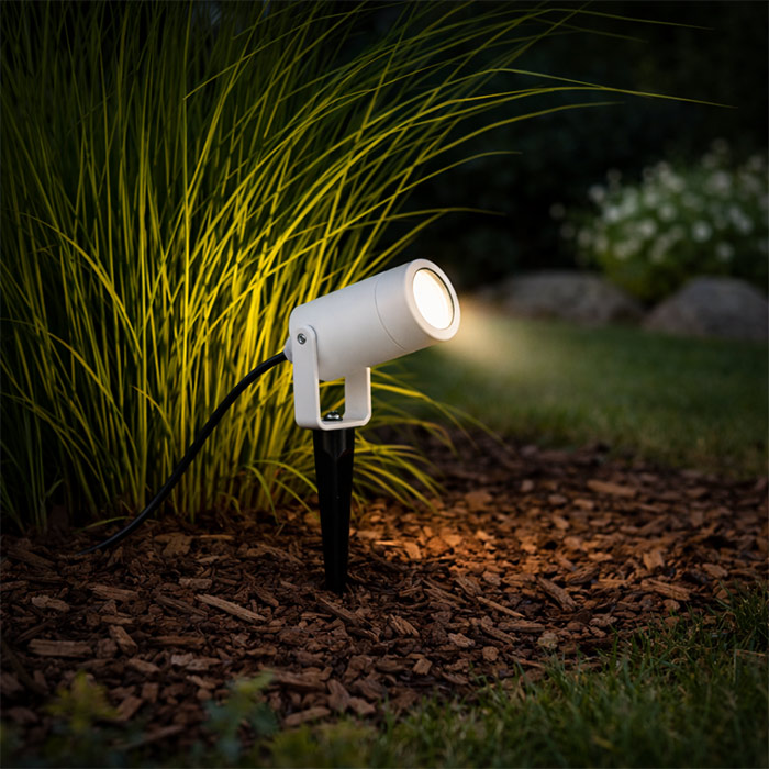 Η μονή κατεύθυνση φωτός επιτρέπει ακριβή φωτισμό και ανάδειξη επιλεγμένων σημείων, όπως φυτά, δέντρα, παρτέρια, μονοπάτια και αρχιτεκτονικά στοιχεία. Το ντουί GU10 υποστηρίζει λαμπτήρες LED έως 3W, προσφέροντας χαμηλή κατανάλωση ενέργειας και ευελιξία στην επιλογή φωτεινότητας και θερμοκρασίας φωτός. Χάρη στη μπηχτή βάση εδάφους, το φωτιστικό μπηχτό κήπου πλαστικό λευκό τοποθετείται εύκολα στο χώμα, επιτρέποντας ευέλικτη διαμόρφωση του φωτισμού.