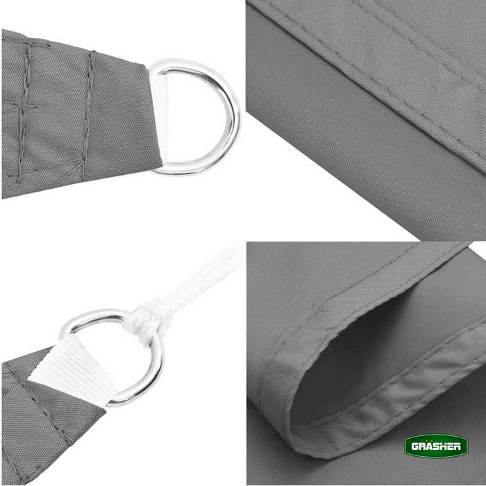 Το Oxford αδιάβροχο πανί σκίασης 4x6m γκρι διαθέτει μεταλλικούς κρίκους στις γωνίες για εύκολη και ασφαλή τοποθέτηση σε τοίχους, κολώνες ή άλλες σταθερές επιφάνειες. Το τετράγωνο σχήμα του επιτρέπει ευέλικτη εγκατάσταση, προσφέροντας ιδανική κάλυψη σε διάφορες διαμορφώσεις χώρου.